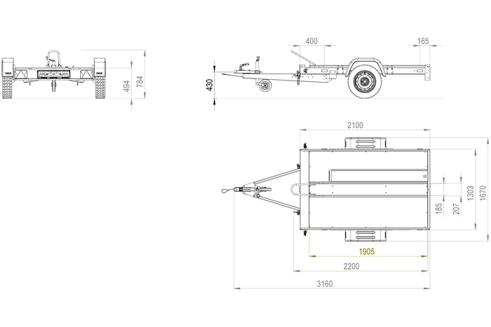 Dimensions de la remorque entière :