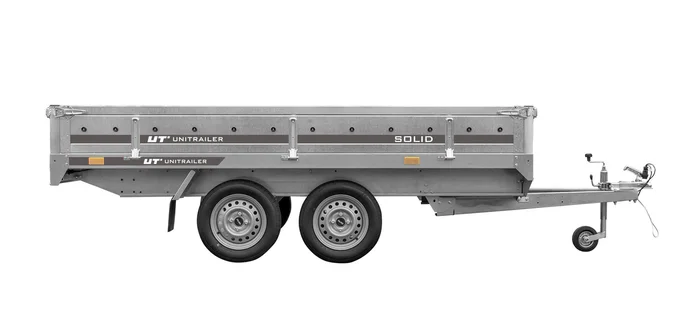 La remorque de transport UNITRAILER SOLID 300/2 est conçue pour le transport de matériaux et possède deux essieux. La roue jockey facilite les manœuvres de la remorque debout. La hauteur appropriée des ridelles et jusqu’à 8 points de fixation de la ceinture protègent le matériau transporté contre les chutes ou les déversements. Les dimensions de la benne de 304x153x30 cm et un PTAC de 750 kg permettent de charger une grande quantité de matériel. La durabilité de la remorque est assurée par le châssis porteur en acier de construction à haute résistance et la surface de transport en contreplaqué imperméable de 9 mm d’épaisseur.