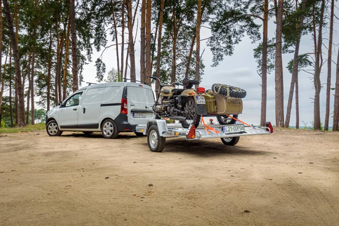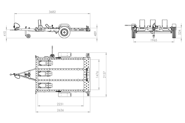 Remorque basculante porte-moto / porte-quad MOTOQUAD 266 avec un PTAC max. jusqu’à 750 kg. Dimensions 2570 x 1600 mm. Remorque simple essieu non freinée. Taille de roue : 165/70 R13. Remorque avec timon pliable hydrauliquement.