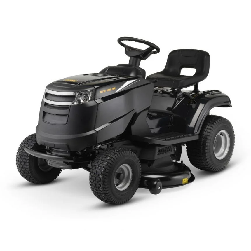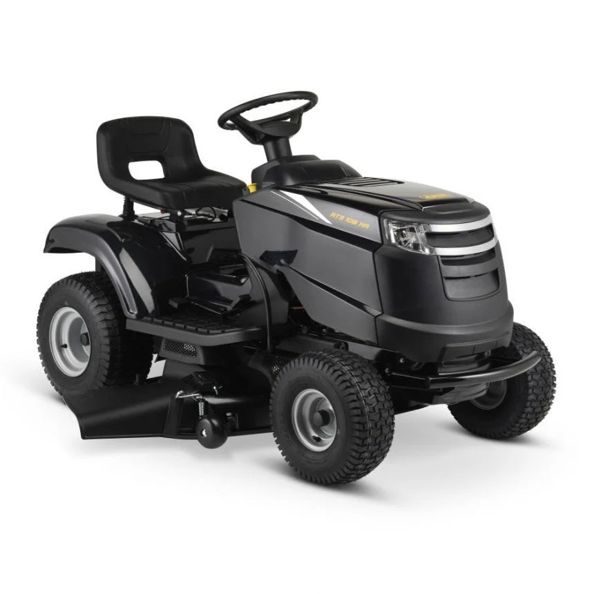 Grâce à ce tracteur de jardin à éjection latérale de 108 cm Alpina, vous pouvez entretenir rapidement et efficacement les vastes étendues de gazon.