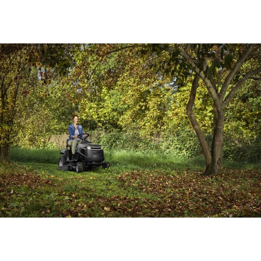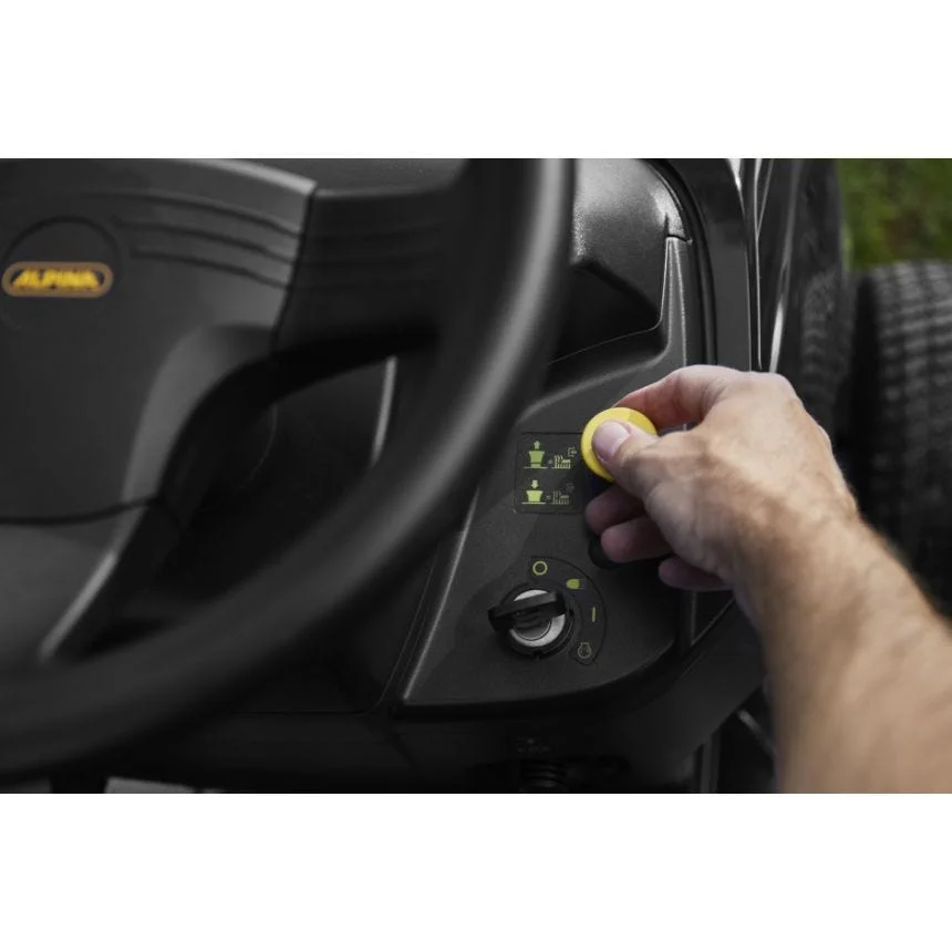 Parmi les autres caractéristiques importantes, citons les roues de pont anti-scalp pour la protection du gazon lors de manœuvres sur des collines et sur des terrains accidentés; et un siège Alpina Smart avec support au bas du dos pour une tonte sans fatigue.